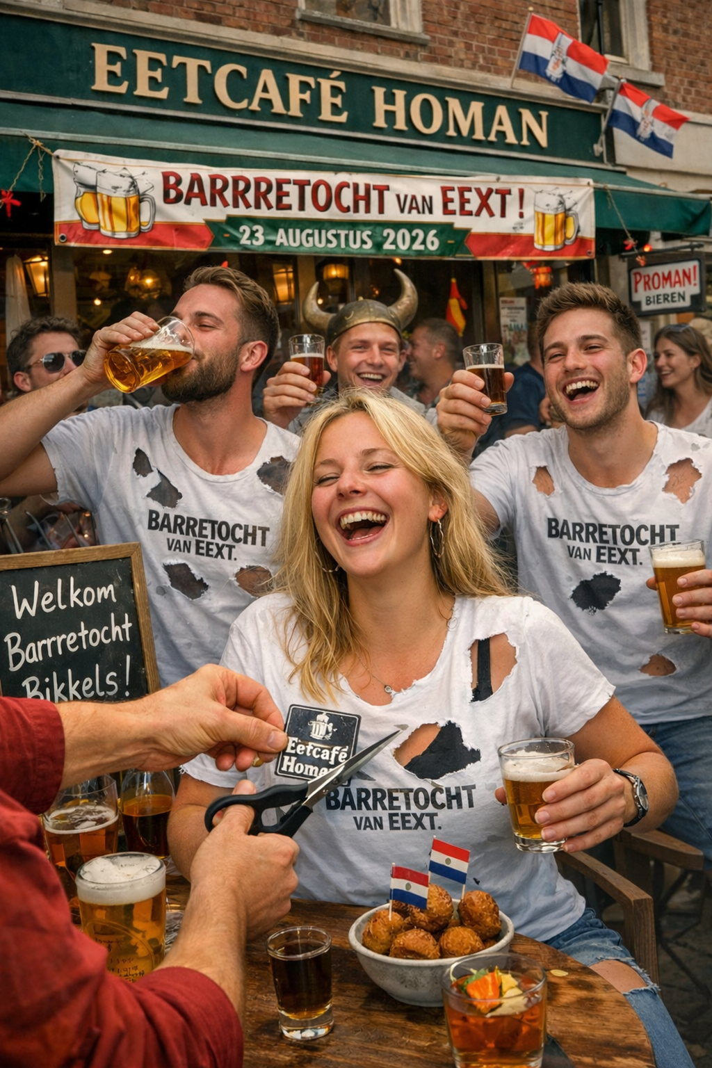 Welkom bij de Barrrrrrrre Tocht, een mini kroegentocht in Eext waar plezier en verbinding centraal staan! Scheur maar uit je T-shirt en bereid je voor op een onvergetelijke ervaring. Dit is dé tocht der tochten, waar je samen met anderen de gezelligheid van Eext ontdekt. Wees erbij en maak het mee!