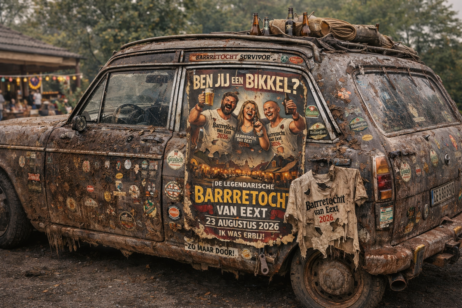 Op 23 augustus 2026 bruist Eext als nooit tevoren. De jaarmarkt vult het dorp met kraampjes, muziek en gezelligheid, maar voor wie écht lef heeft, is er maar één echte uitdaging: de Barrretocht van Eext.