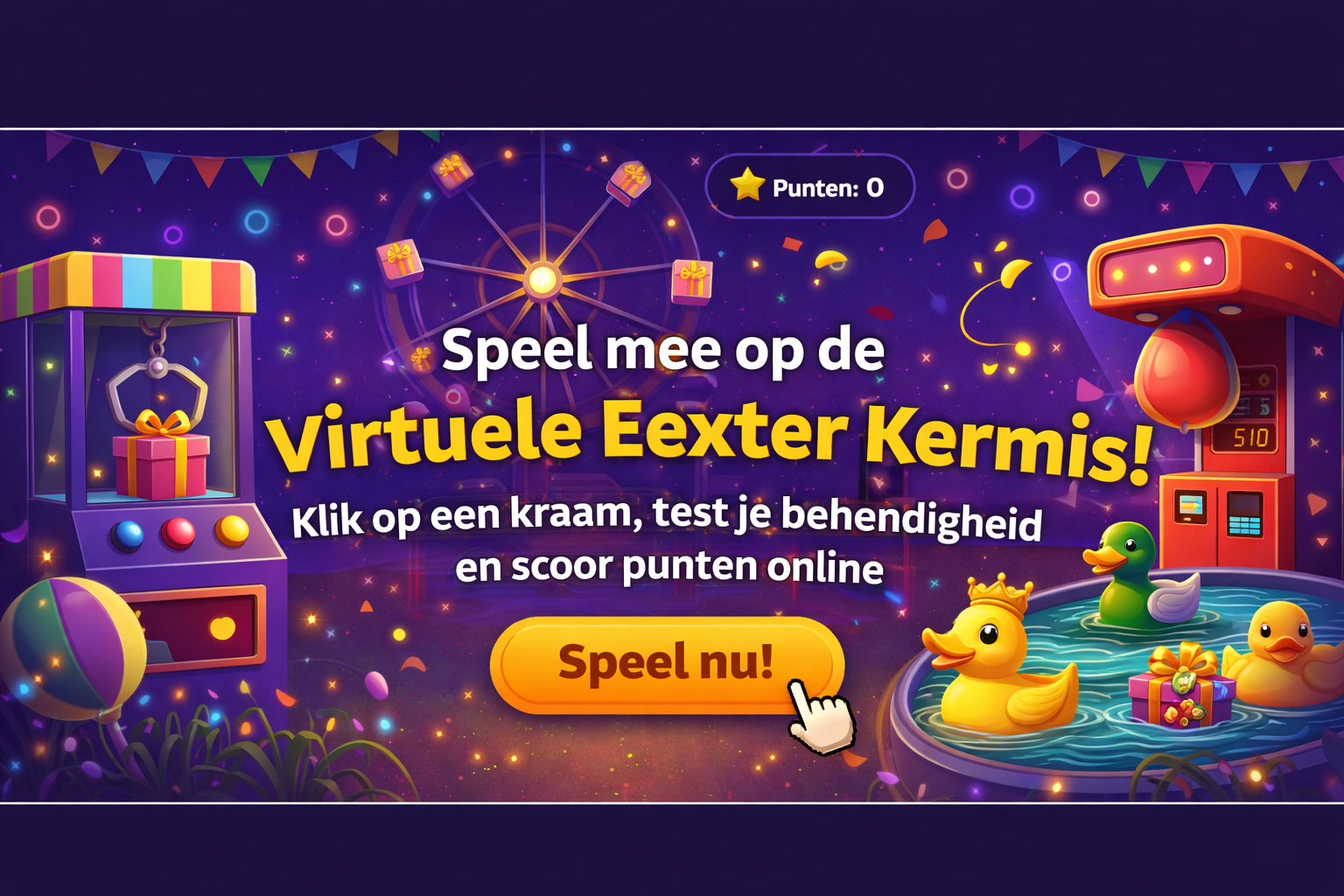 Loop de Virtuele Eexter Kermis op en test je geluk, snelheid en behendigheid. Pak prijzen, scoor punten en proef alvast de sfeer van het gezelligste (zomer)feest van Drenthe!